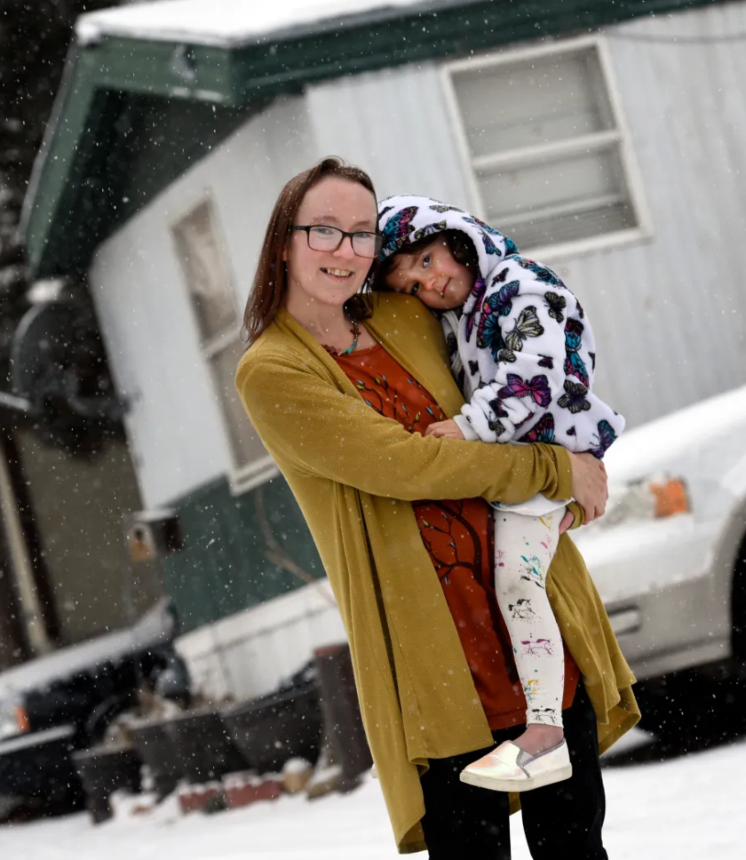 Heather Malone holds her daughter Caoimhe, 4, outside their home in the Golden Hills Park for Mobile Homes in Golden on March 9, 2022. Heather and her family have lived at Golden Hills for almost a decade. Colorado lawmakers recently introduced a bill that would add greater protections to mobile home residents throughout the state. The biggest piece of …